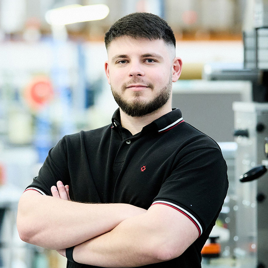 „Schon als Kind habe ich mir gewünscht, alles über Maschinen zu lernen. In meiner Ausbildung bei Krahnen & Gobbers wurde der Wunsch dann Wirklichkeit - auch wenn ich anfangs etwas ängstlich war, was auf mich zukommt. Doch es hat sich gelohnt, mich an ein neues Berufsfeld heranzuwagen. Heute übernehme ich als Auszubildender bei Krahnen & Gobbers bereits viele Aufgaben in der Produktion. Es gefällt mir sehr gut, dass ich Schritt für Schritt mit der Verantwortung wachsen kann.“